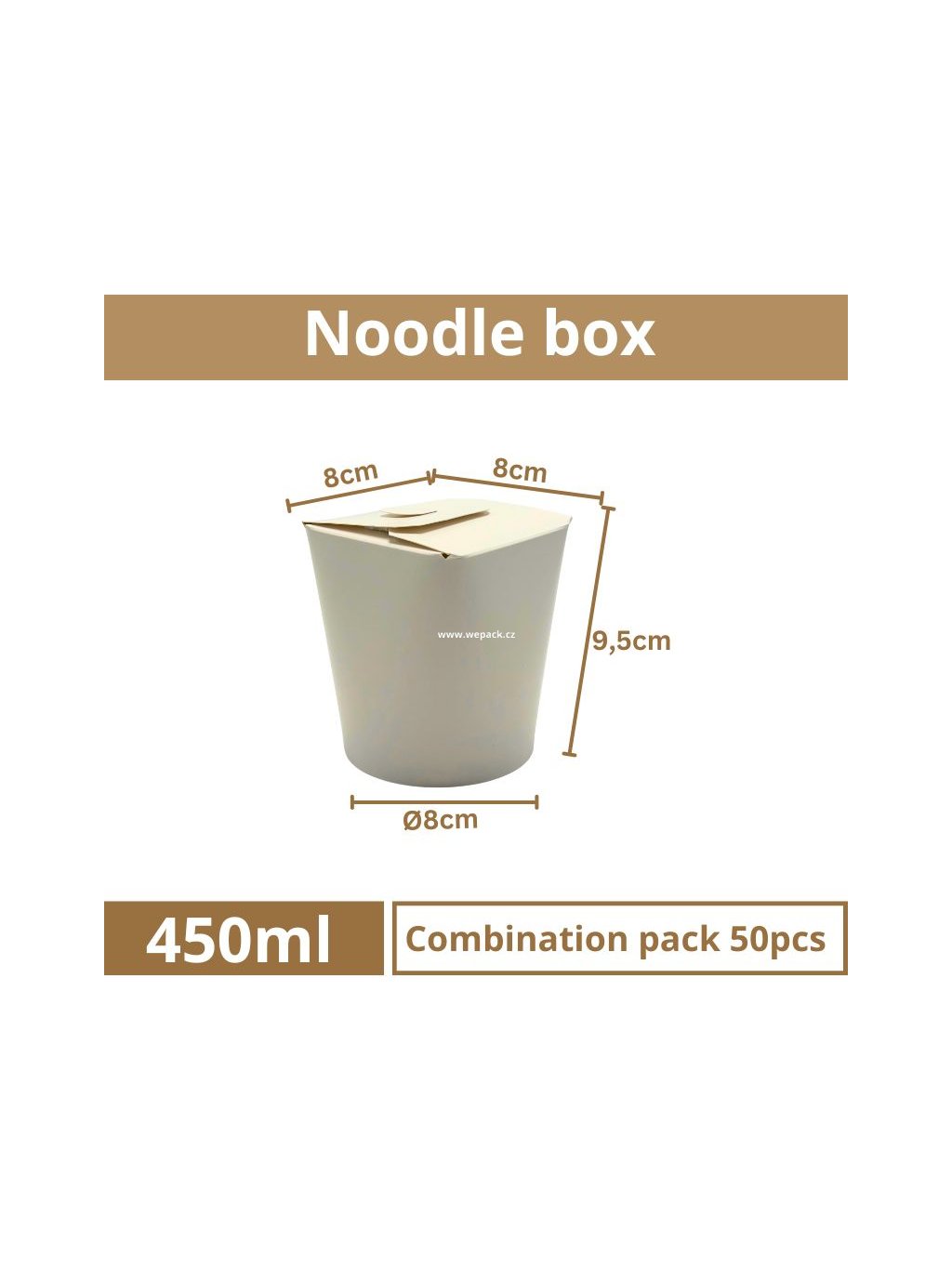 Papírový box na nudle o objemu 450 ml je ideální pro servírování a balení asijských jídel, těstovin, rýže nebo smažených pokrmů. Díky vnitřní PE vrstvě je odolný proti prosakování omáček a tuků, což zajišťuje bezpečný transport i skladování.