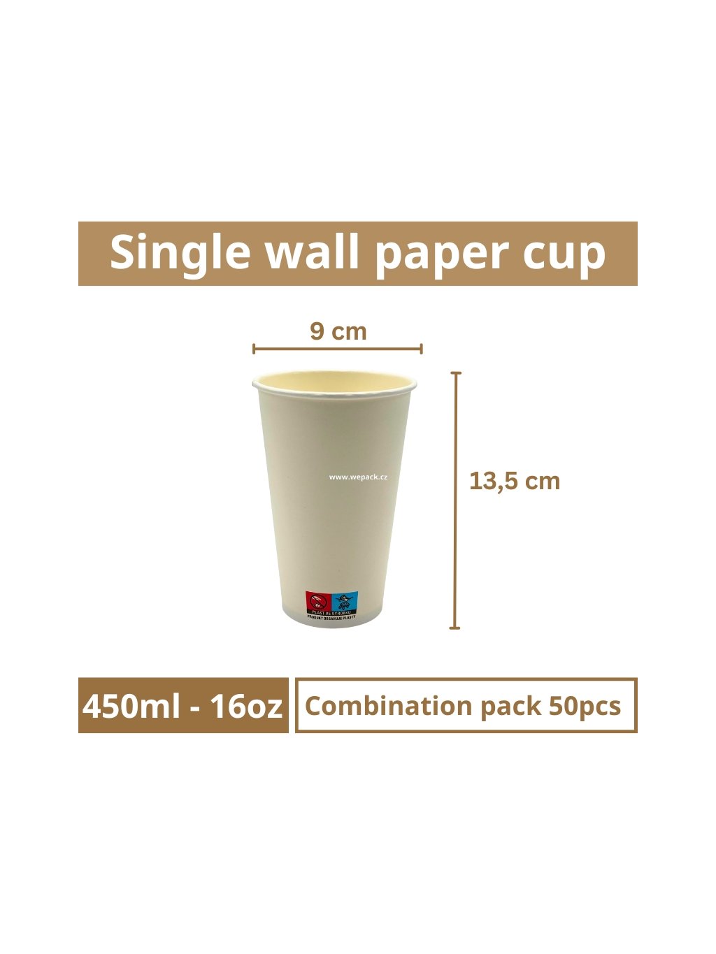 The 450 ml white paper cup is ideal for serving large coffee specialties, tea, and refreshing drinks. Its single-wall design is lightweight, practical, and reliable for daily use in food service and catering events.