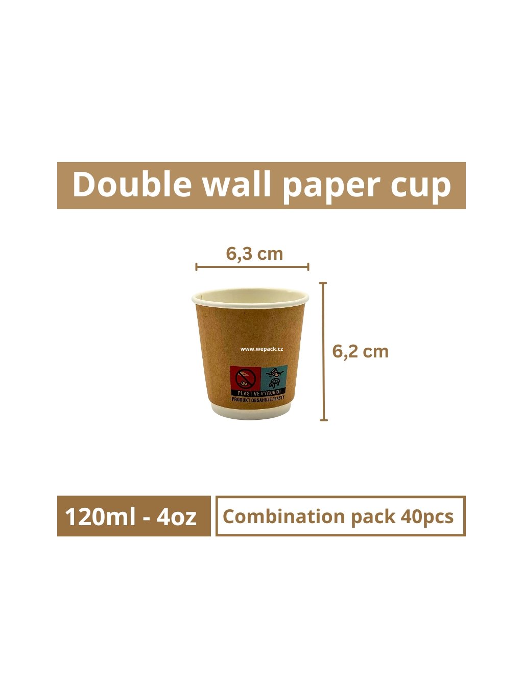 Brown double-wall kraft paper cup 120ml (4 oz) – 25 packs × 40 pcs