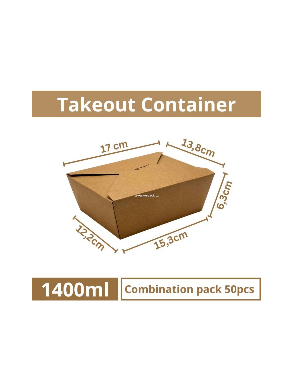 Brown paper food box 1400 ml – 4 packs × 50 pcs