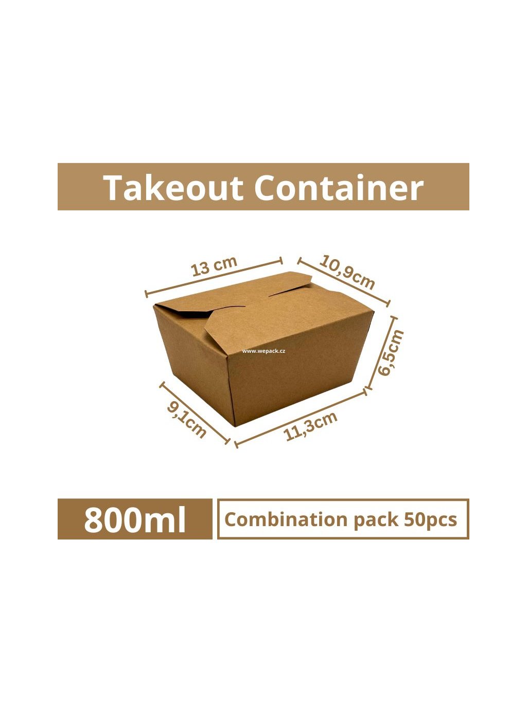 Brown paper food box 800 ml – 4 packs × 50 pcs