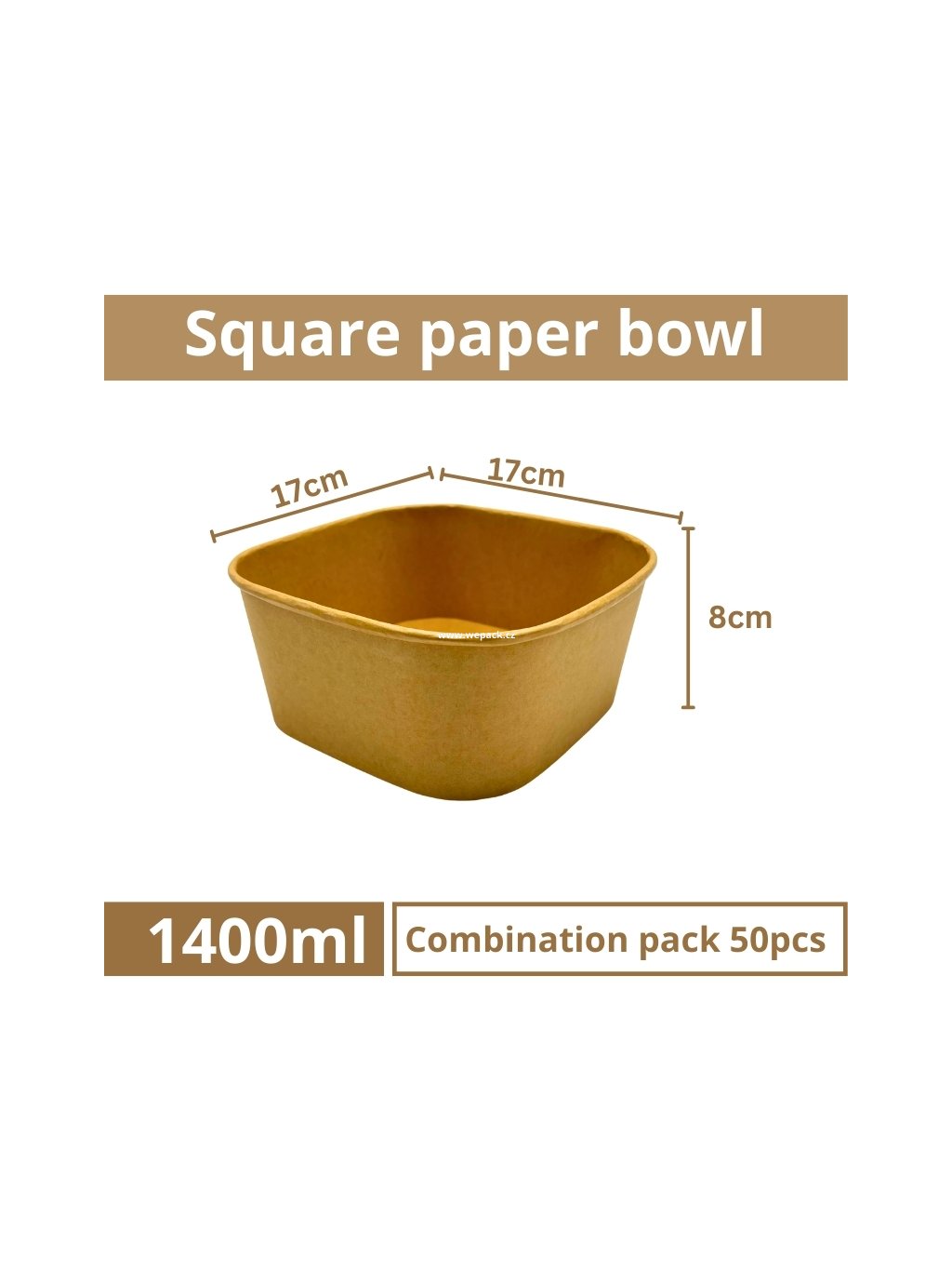 Brown square paper bowl 1400ml – 6 packs × 50 pcs