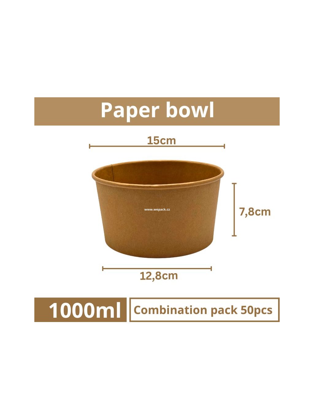 Brown paper salad bowl 1000 ml – 6 packs × 50 pcs