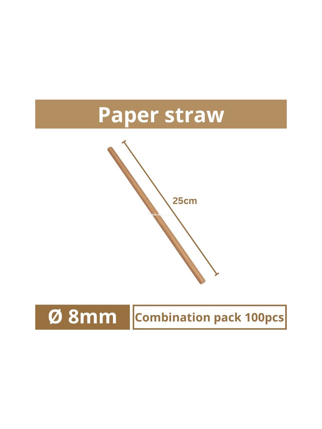 The jumbo paper straw, 25 cm long and 8 mm in diameter, is an ideal accessory for serving drinks in restaurants, bars, or nightclubs. Made from sturdy kraft paper, it is eco-friendly, biodegradable, and compostable. The straws are strong, do not dissolve, and do not soften even when in contact with liquid, making them suitable for both cold and hot beverages. Perfect for milkshakes, cocktails, slushies, and other refreshing drinks, especially during the summer months.