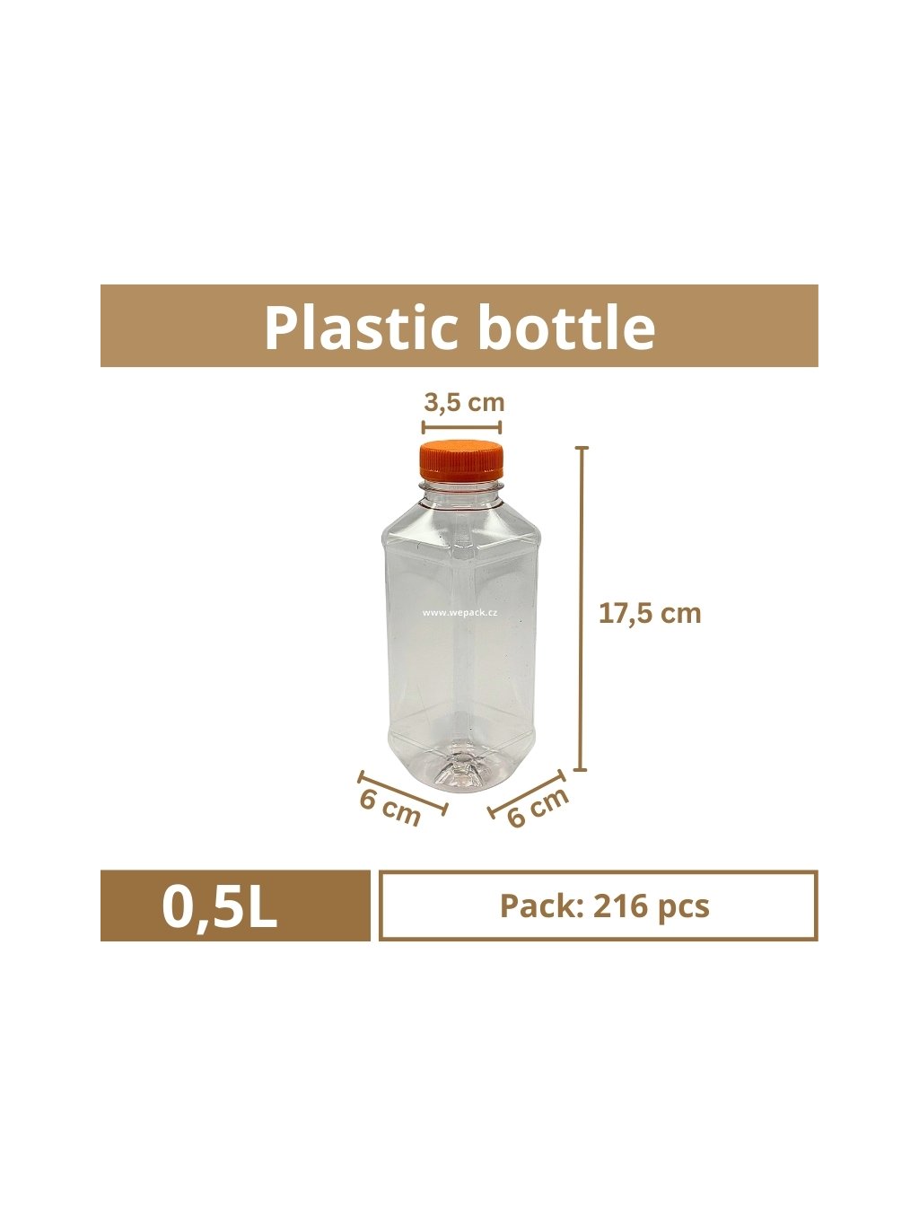 Plastic PET bottle 0.5L transparent square with lid – 1 pack × 216 pcs