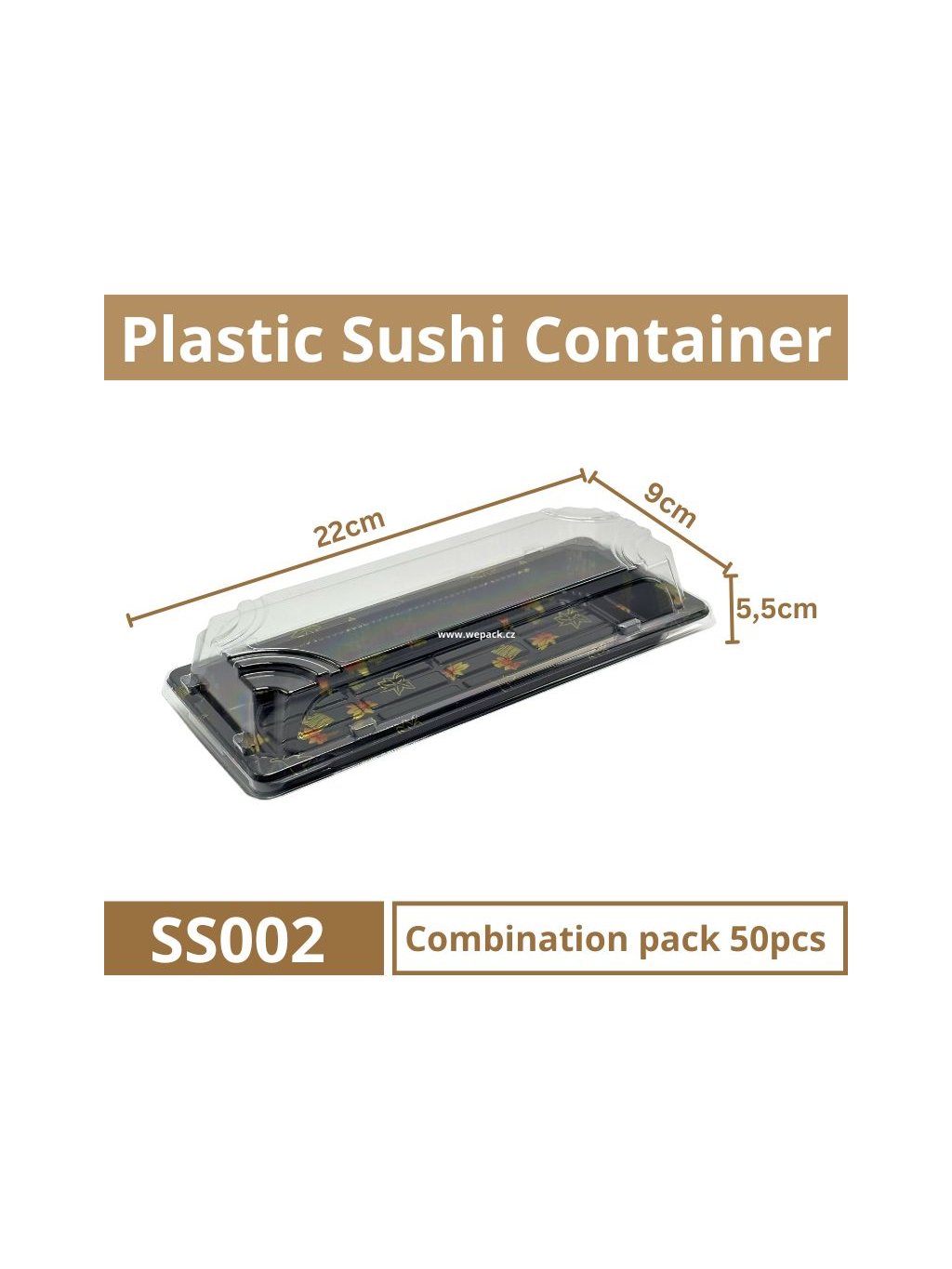 Plastic sushi tray with lid 220×90×55mm – 8 packs × 50 pcs