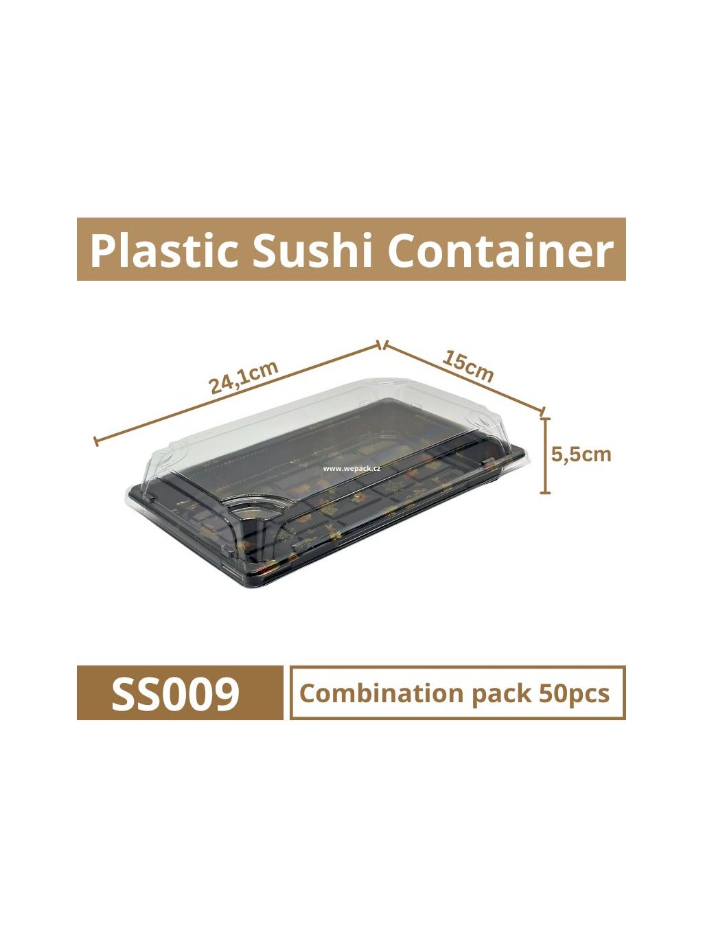 Plastic sushi tray with lid 241×150×55mm – 6 packs × 50 pcs