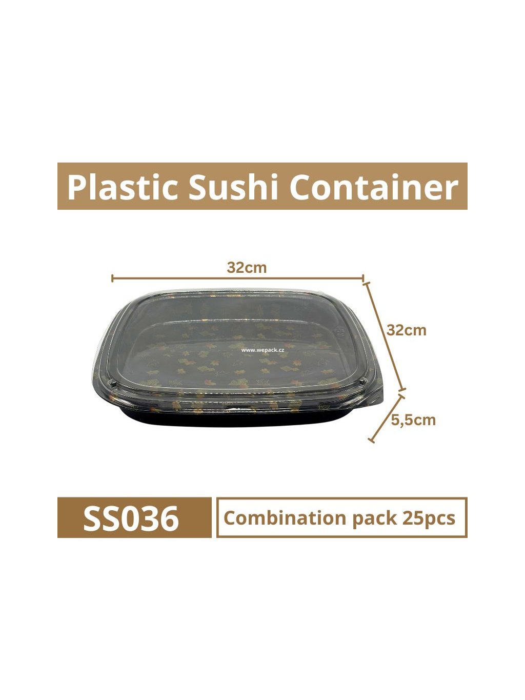 Plastic sushi tray with lid 323×323×55mm – 4 packs × 25 pcs