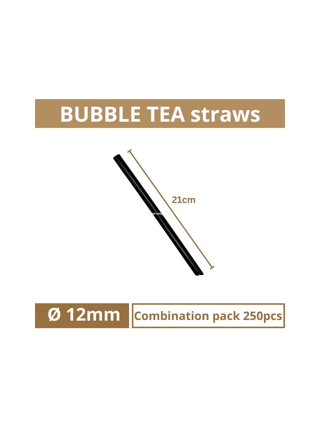 Plastic straw for BUBBLE TEA Ø12/210 mm black – 8 packs × 250 pcs