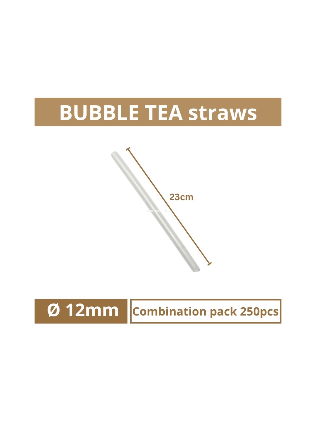 Dimensions: Length 230 mm, diameter Ø12 mm (tolerance: length ±3 mm, diameter ±0.2 mm) – “boba” size suitable for tapioca pearls and toppings.