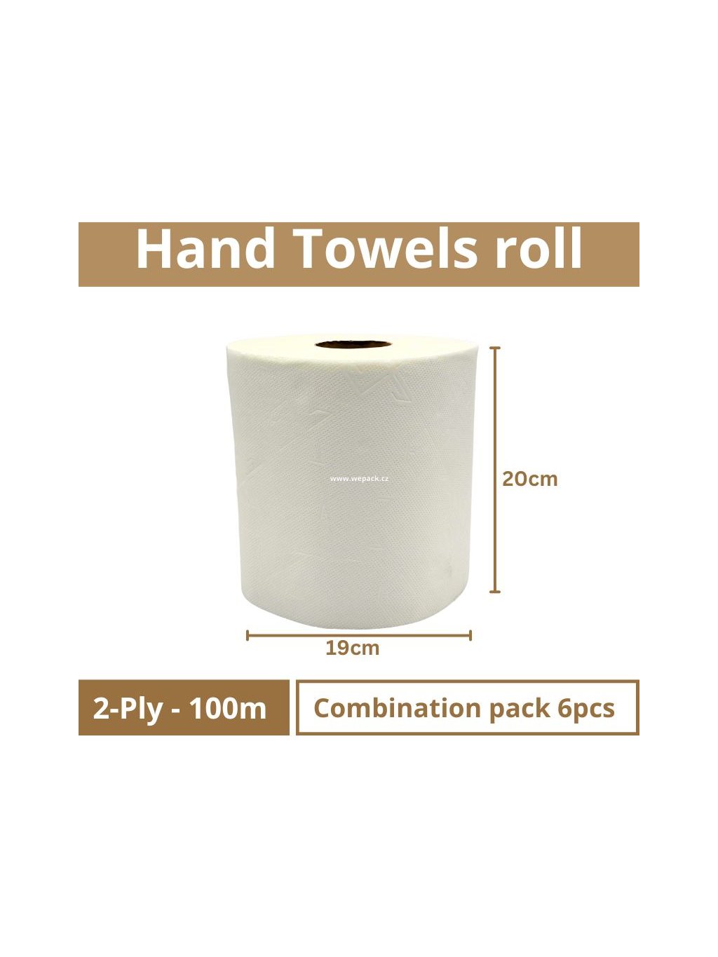 White Paper Towels in Roll, 2-Ply, 100 m – 1 Pack × 6 Rolls
