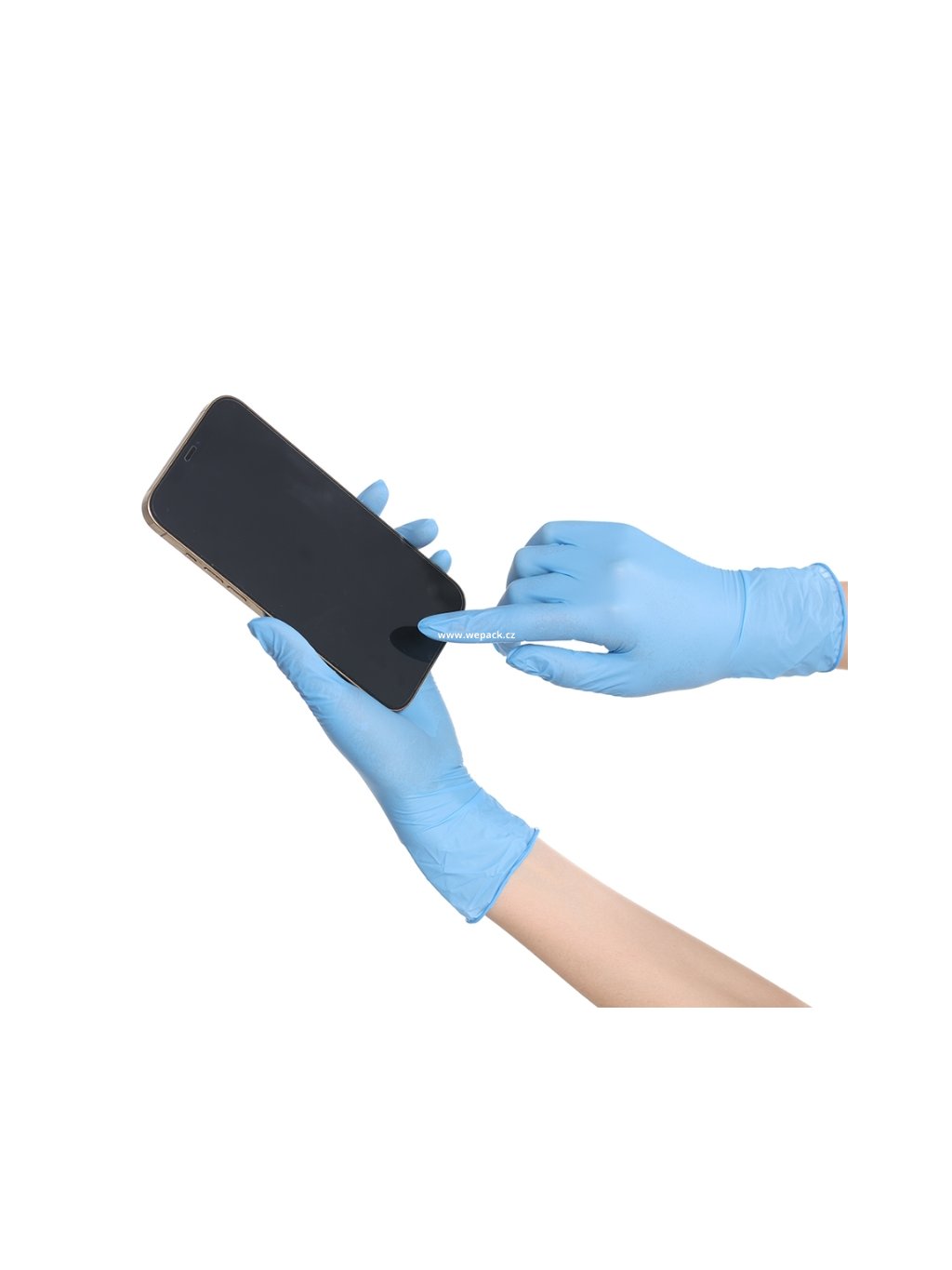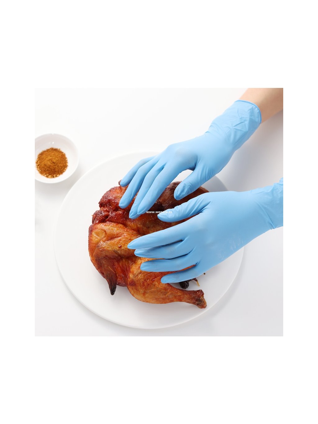 Blue nitrile powder-free gloves – 10 packs x 100 pcs, made from durable nitrile, ideal for the food industry, healthcare and industrial use. Powder-free, latex-free, with textured fingertips for a secure grip and comfortable wear. Hypoallergenic, strong and flexible.