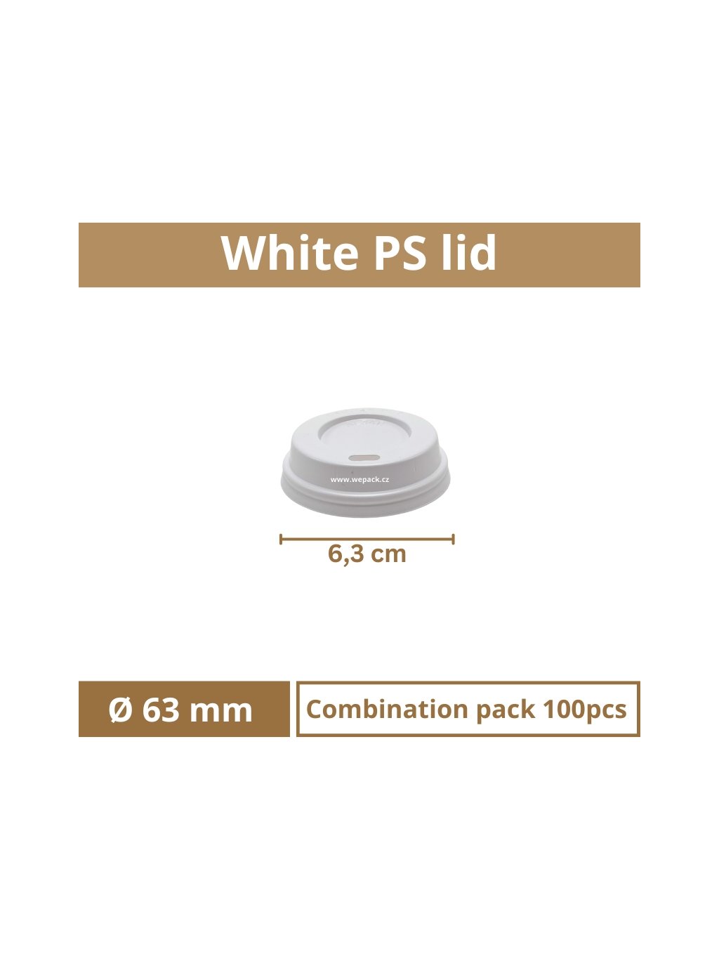 White PS lid with hole for paper cup 63mm – 10 packs × 100 pcs