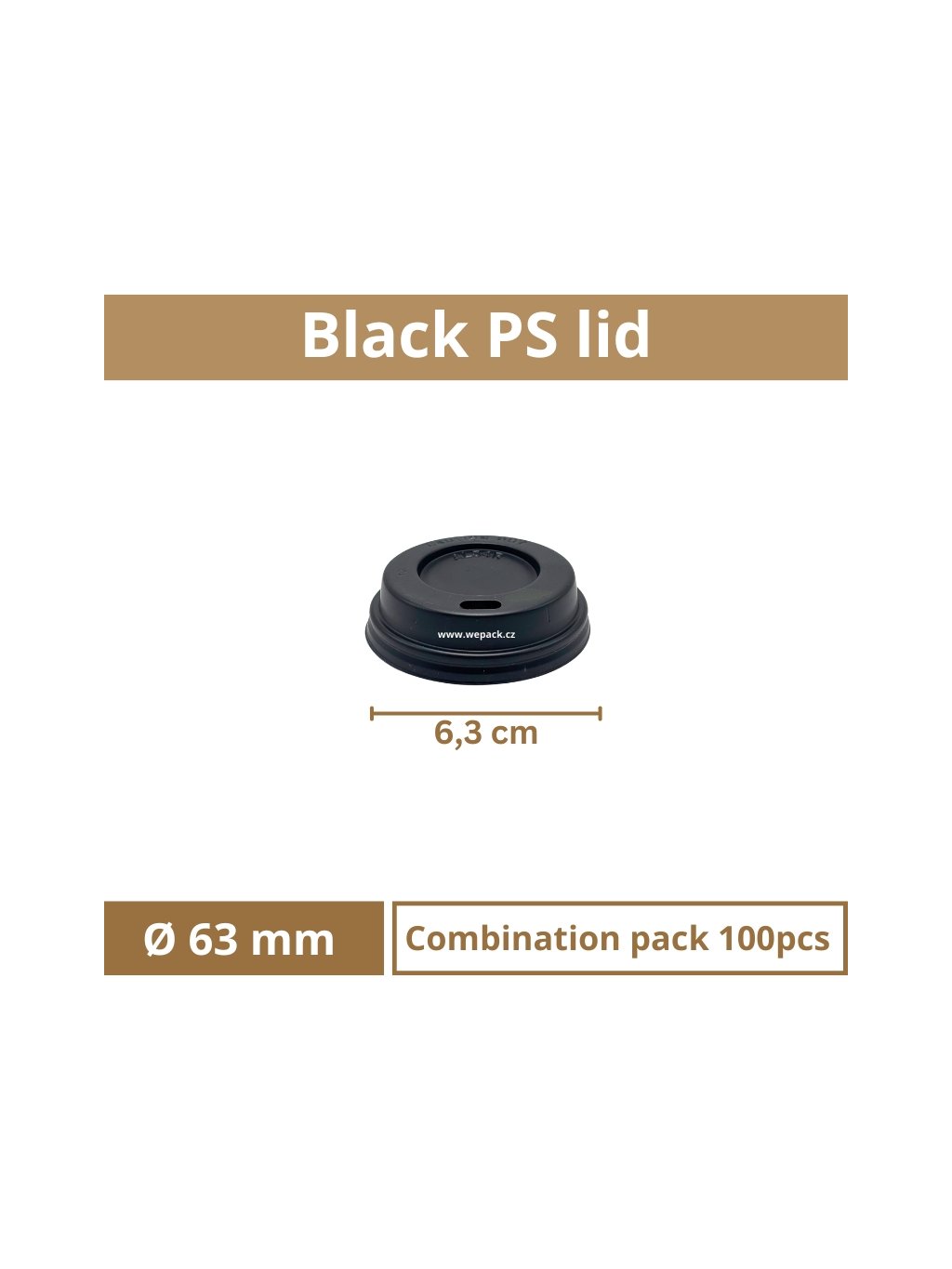 Black PS lid with hole for paper cup 63mm – 10 packs × 100 pcs