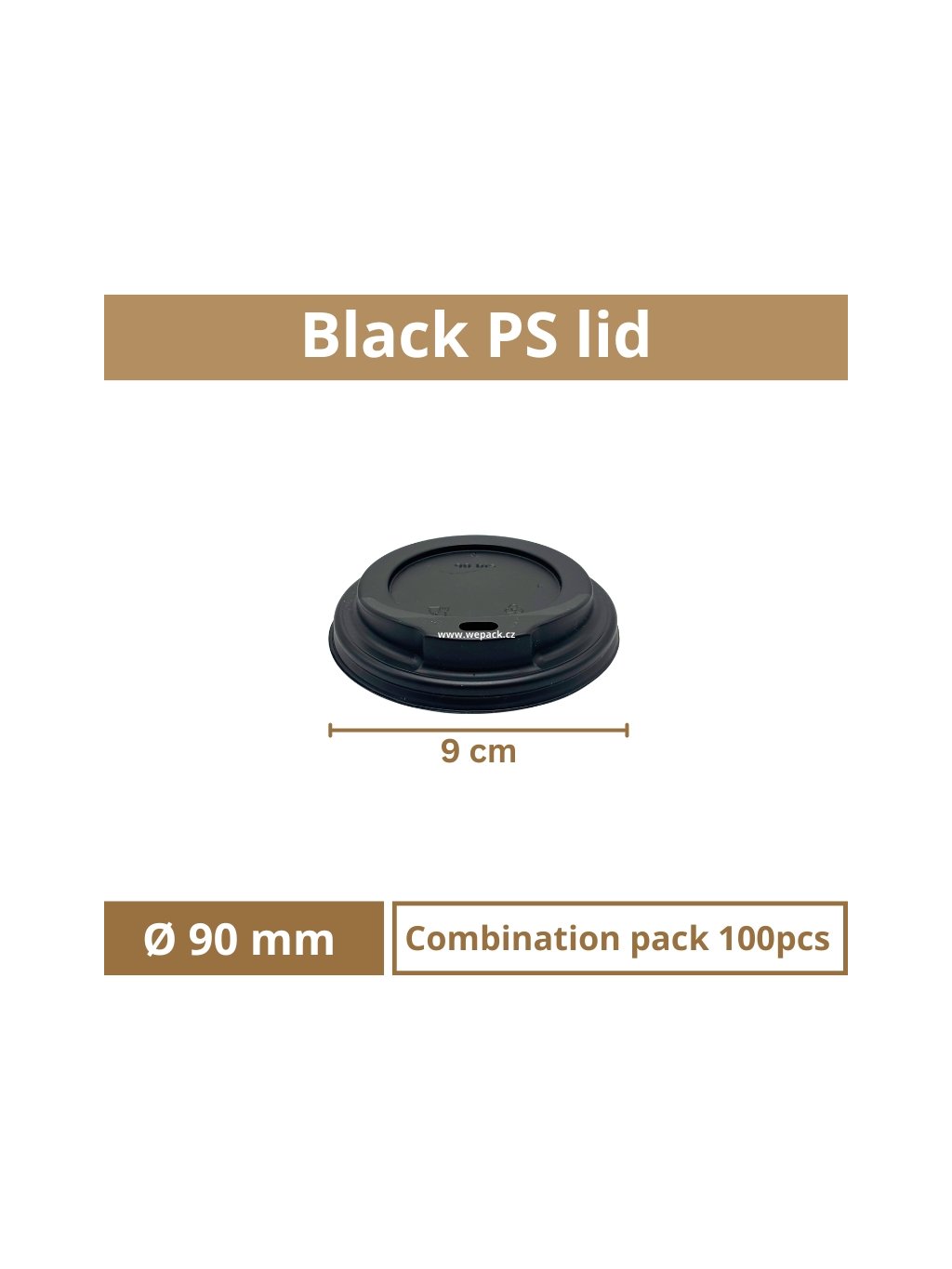 Black PS lid with hole for paper cup 90mm – 10 packs × 100 pcs